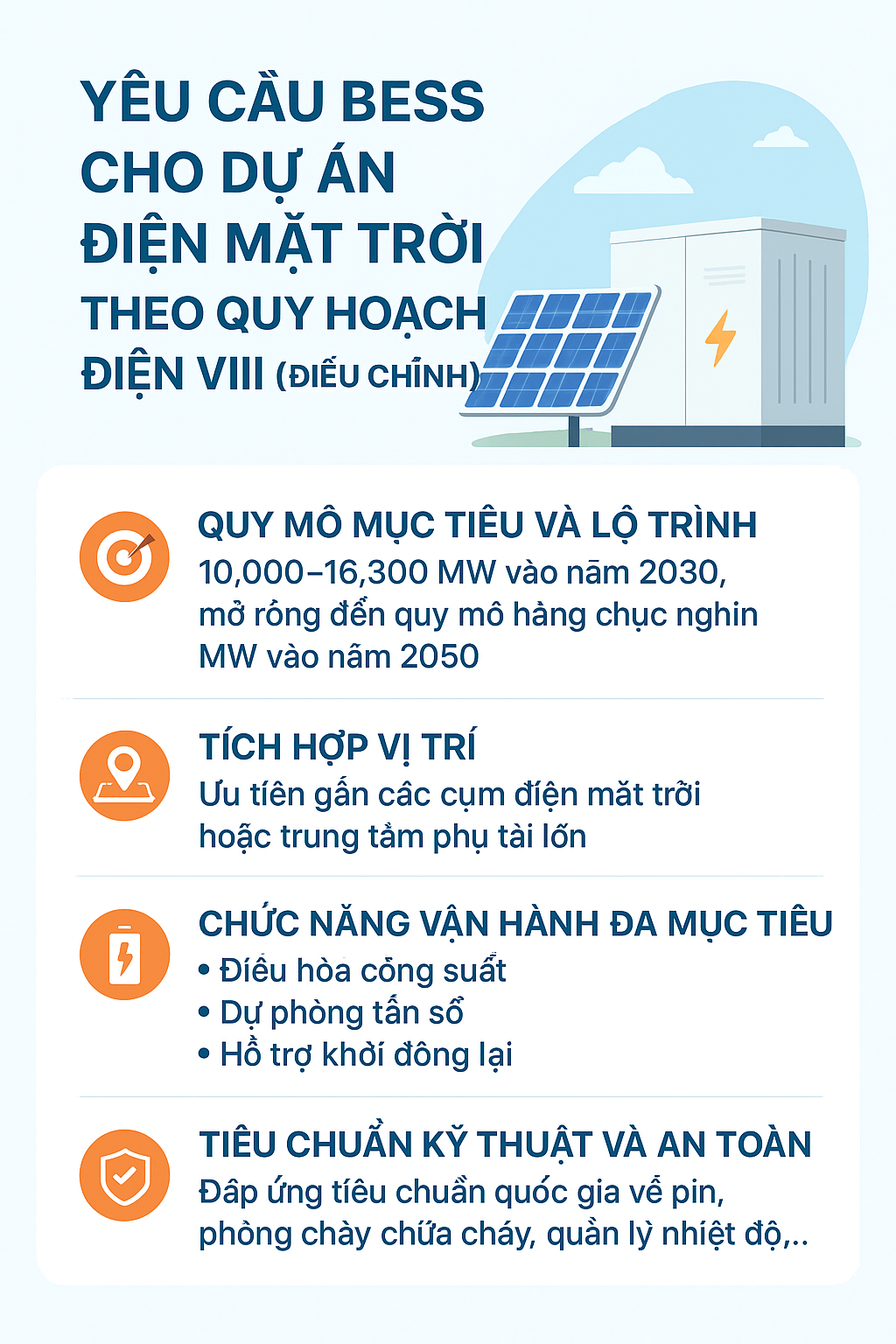 Yêu cầu BESS cho dự án điện mặt trời theo Quy hoạch Điện VIII (điều chỉnh)